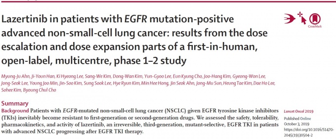 ¿¬±¸ °á°ú¿¡ µû¸£¸é, ¾Ï Å©±â°¡ 30% ÀÌ»ó °¨¼ÒÇØ °´°üÀû ¹ÝÀÀÀ» º¸ÀΠȯÀÚ ºñÀ²(ORR)Àº ±âÁ¸ Ç×¾ÏÁ¦¿¡ ÀúÇ×¼ºÀ» ³ªÅ¸³»´Â T790M µ¹¿¬º¯ÀÌ ¾ç¼ºÀÇ ¸ðµç ȯÀÚ¿¡¼ 57%¿´´Ù. ±× Áß 120mg ÀÌ»óÀÇ ¿ë·®À» Åõ¿©ÇÑ È¯ÀÚ¿¡¼´Â 60%±îÁö ³ô¾ÆÁ³À¸¸ç, ¿ÏÀü °üÇØ ȯÀÚµµ 3¸íÀ̳ª µÆ´Ù.