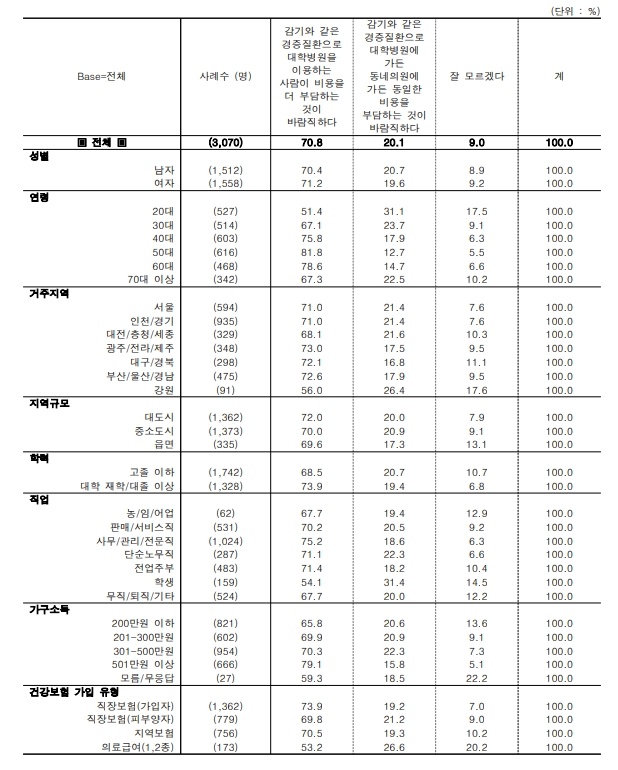 ÁÖ¸ñÇÒ Á¡Àº ‘´ëÇк´¿ø¿¡ °¡µç, µ¿³×ÀÇ¿ø¿¡ °¡µç µ¿ÀÏÇÑ ºñ¿ëÀ» ºÎ´ãÇÏ´Â °ÍÀÌ ¹Ù¶÷Á÷ÇÏ´Ù’´Â ÀÀ´äÀº 20.1%ÀÎ ¹Ý¸é ‘´ëÇк´¿øÀ» ÀÌ¿ëÇÏ´Â »ç¶÷ÀÌ ºñ¿ëÀ» ´õ ºÎ´ãÇÏ´Â °ÍÀÌ ¹Ù¶÷Á÷ÇÏ´Ù’´Â ÀÀ´äÀº 70.8%·Î ¼¼ ¹è ÀÌ»ó ¸¹¾Ò´Ù´Â °ÍÀÌ´Ù.