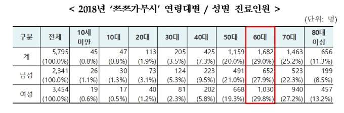 ÂêÂê°¡¹«½Ã·Î ¿ä¾ç±â°üÀ» ¹æ¹®ÇÑ È¯ÀÚ´Â 2014³â 1¸¸384¸í¿¡¼ 2018³â 5795¸íÀ¸·Î ¸Å³â ÁÙ¾îµå´Â Ãß¼¼¸¦ º¸À̳ª Áø·áÀοøÀÇ ¼ºº° ÇöȲÀ» º¸¸é ¸Å³â ¿©¼ºÀÌ ÀüüÀÇ ¾à 60%¸¦ Â÷ÁöÇÏ´Â °ÍÀ¸·Î ³ªÅ¸³µ´Ù.