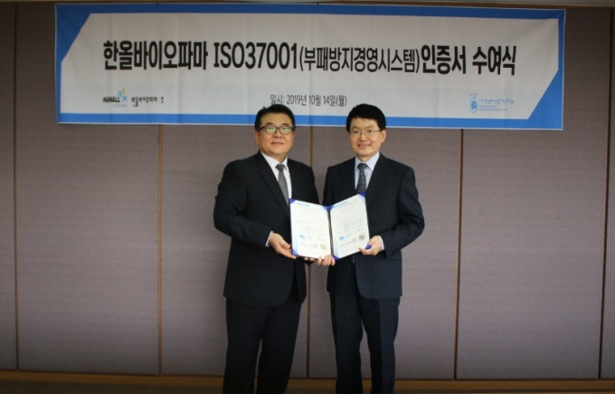 [µ¥Àϸ®¸Þµð ¾çº¸Çý ±âÀÚ] ÇѿùÙÀÌ¿ÀÆÄ¸¶(°øµ¿´ëÇ¥ ¹Ú½Â±¹, À±ÀçÃá)°¡ ºÎÆÐ¹æÁö°æ¿µ½Ã½ºÅÛ ±¹Á¦Ç¥ÁØÀÎ ISO 37001(ABMS) ÀÎÁõÀ» ȹµæÇß´Ù.