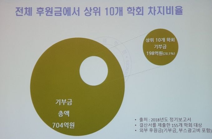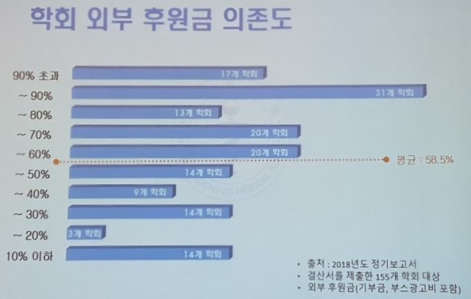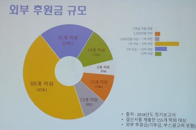 ´ëÇÑÀÇÇÐȸ°¡ ÃÖ±Ù 155°³ ȸ¿øÇÐȸÀÇ 2018³âµµ Á¤±âº¸°í¼¸¦ ºÐ¼®ÇÑ °á°ú, 95%ÀÎ 147°³ ÇÐȸ°¡ ¿ÜºÎÁö¿øÀ» ¹Þ°í ÀÖ´Â °ÍÀ¸·Î Á¶»çµÆ´Ù. ¿ÜºÎÁö¿øÀÌ ¾ø´Â ÇÐȸ´Â 8°÷¿¡ ºÒ°úÇß´Ù.