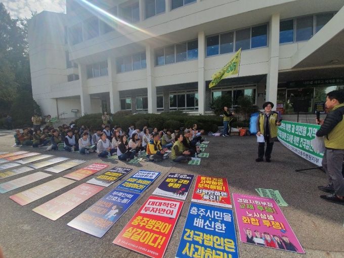 17ÀÏ º¸°ÇÀÇ·á³ëÁ¶ °Ç±¹´ëÇб³ÃæÁÖº´¿øÁöºÎ´Â °Ç±¹´ëÇб³ ÇàÁ¤°ü ¾Õ¿¡¼ À¯ÀÚÀº Àç´Ü ÀÌ»çÀå ±ÔźÁýȸ¸¦ ¹ú¿´´Ù.