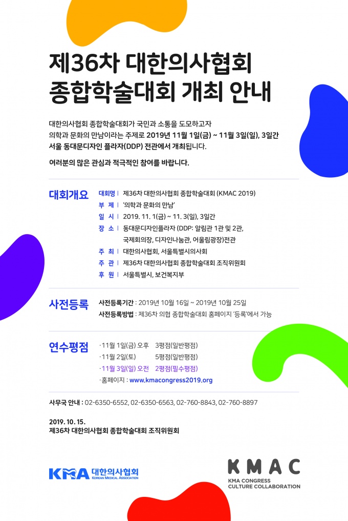 [µ¥Àϸ®¸Þµð ¹Ú±Ùºó ±âÀÚ] ´ëÇÑÀÇ»çÇùȸ Á¾ÇÕÇмú´ëȸ Á¶Á÷À§¿øÈ¸(ȸÀå ÃÖ´ëÁý, °øµ¿Á¶Á÷À§¿øÀå ¹ÚÁ¤À²·¹ÚÈ«ÁØ)´Â 11¿ù1ÀϺÎÅÍ 3ÀϱîÁö 3Àϰ£ µ¿´ë¹®µðÀÚÀÎÇöóÀÚ(DDP)¿¡¼ ‘ÀÇÇаú ¹®ÈÀÇ ¸¸³²’À̶ó´Â ÁÖÁ¦·Î Á¦36Â÷ ´ëÇÑÀÇ»çÇùȸ Á¾ÇÕÇмú´ëȸ¸¦ °³ÃÖÇÑ´Ù.