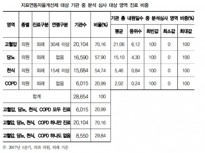 ½ÉÆò¿ø ÃøÀº “ÁöÇ¥¿¬µ¿ÀÚÀ²°³¼±Á¦¿¡¼ ±â°ü´ÜÀ§ ÁöÇ¥ »êÃâ ÈÄ ÇØ´ç ¿ä¾ç ±â°ü¸¶´Ù ºÐ¼®½É»ç ÇØ´ç ¿µ¿ªÀÇ Áø·áºñÁßÀ» »ìÆìº» ÈÄ ÁöÇ¥ °ªÀÌ »óÃæµÇÁö ¾Ê´ÂÁö¸¦ °ËÁõÇØ °ü¸® ´ë»ó ¼±Á¤ ¿©ºÎ¸¦ ÃÖÁ¾ °áÁ¤ÇØ¾ß ÇÑ´Ù”°í °á·Ð ³»·È´Ù.