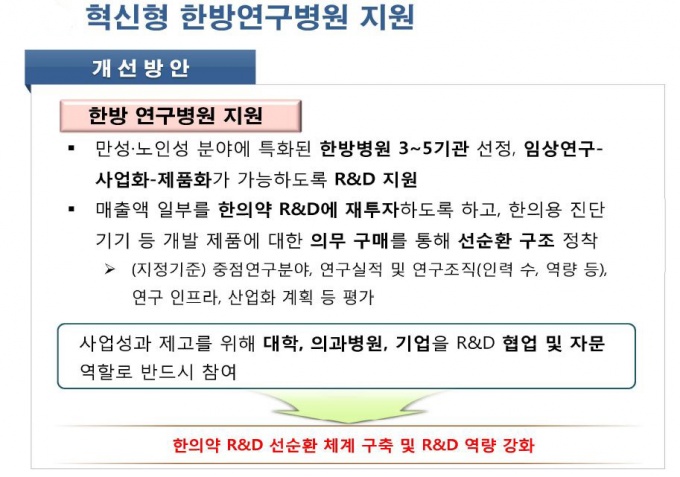 ¶Ç ÇѹæÁ¦Á¦ ½ÃÀå È®´ë¸¦ À§ÇØ ½Å±Ô ÀûÀÀÁõ ¹ß±¼À» Áö¿øÇÒ ¹æÄ§ÀÌ´Ù. À̸¦ À§ÇØ ¸¸¼º, ³ëÀμº ºÐ¾ß¿¡ Æ¯ÈµÈ 'Çõ½ÅÇü Çѹ濬±¸º´¿ø'À» ¼±Á¤ ¹× Áö¿øÇÏ´Â ¹æ¾ÈÀ» °ËÅäÇÑ´Ù.