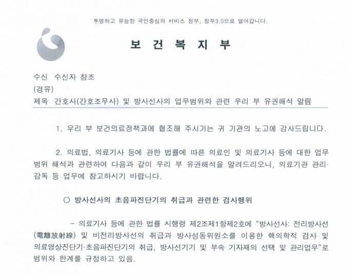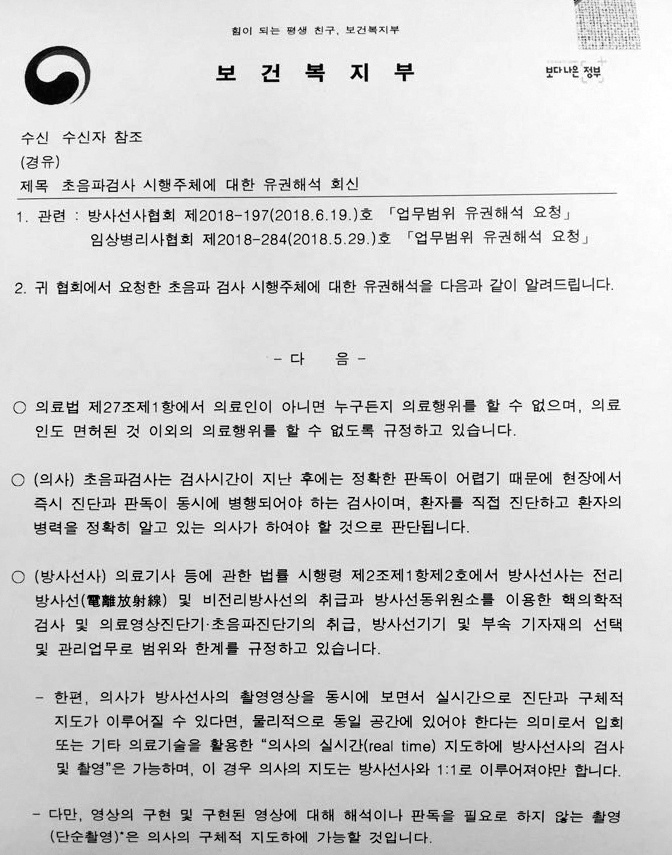 À̺¸´Ù ¾Õ¼ º¹ÁöºÎ´Â ÃÊÀ½ÆÄ°Ë»ç ½ÃÇà ÁÖü¿¡ ´ëÇÑ À¯±ÇÇØ¼® ȸ½Å¿¡¼ “ÀÇ·á¹ý Á¦27Á¶ Á¦1Ç׿¡¼ ÀÇ·áÀÎÀÌ ¾Æ´Ï¸é ´©±¸µçÁö ÀÇ·áÇàÀ§¸¦ ÇÒ ¼ö ¾øÀ¸¸ç, ÀÇ·áÀεµ ¸éÇãµÈ °Í ÀÌ¿ÜÀÇ ÀÇ·áÇàÀ§¸¦ ÇÒ ¼ö ¾ø´Ù°í ±ÔÁ¤Çϰí ÀÖ´Ù”°í ¹àÇû´Ù.