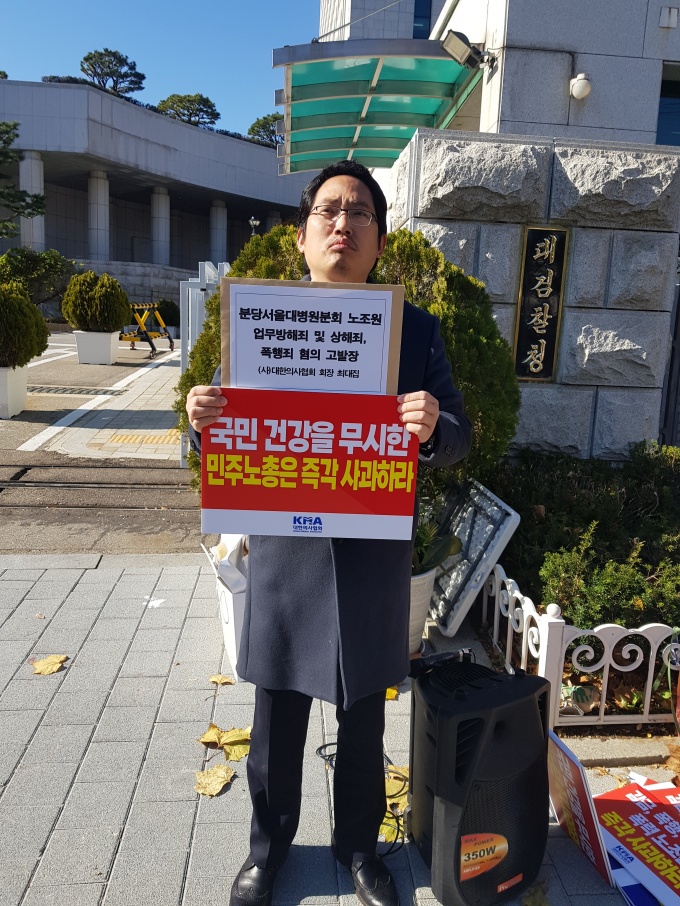 [µ¥Àϸ®¸Þµð ¾çº¸Çý ±âÀÚ] ´ëÇÑÀÇ»çÇùȸ ÃÖ´ëÁý ȸÀåÀÌ ¹ÎÁÖ³ëÃÑ °ø°ø¿¬´ë³ëÁ¶ ºÐ´ç¼¿ï´ëº´¿øºÐȸ Ã¥ÀÓÀÚ¿Í ¼Ò¼Ó ³ëÁ¶¿øµéÀ» ¾÷¹«¹æÇØÁË ¹× »óÇØÁË, ÆøÇàÁË ÇøÀÇ·Î ´ë°ËÂûû¿¡ °í¹ßÇß´Ù.