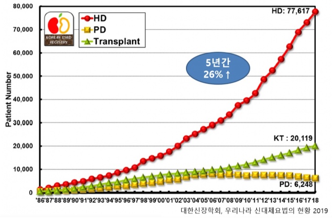 ÇöÀç ±¹³» ¸¸¼ºÄáÆÏº´ ȯÀÚ ¼ö´Â ¾à 10¸¸¸í(¸»±â½ÅºÎÀü 7¸¸7617¸í, ½ÅÀåÀÌ½Ä 2¸¸119¸í, º¹¸·Åõ¼® 6248¸í)À¸·Î ÃÖ±Ù 5³â°£ 26% Áõ°¡Çß´Ù. ½Åȯ ¹ß»ý ¿ª½Ã ÃÖ±Ù 5³â»õ 45%·Î °¡ÆÄ¸¥ »ó½Â¼¼¸¦ º¸¿´´Ù.