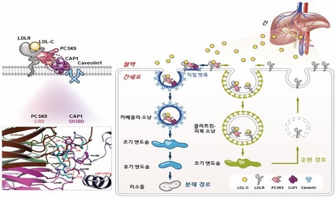 ¿¬±¸Áø¿¡ µû¸£¸é ÀÌ ¶§ CAP1 ´Ü¹éÁúÀÌ LDL¼ö¿ëü¿Í °áÇÕÇÑ PCSK9À» Ä«º£¿Ã¸°À̶ó´Â ¼¼Æ÷³» À¯ÀÔ°æ·Î·Î ²ø°í°¡ LDL-¼ö¿ëü°¡ ÀçȰ¿ë µÇÁö ¸øÇÏ°í ¸®¼ÒÁ»À» ÅëÇØ ºÐÇØ µÇµµ·Ï ÇÑ´Ù.