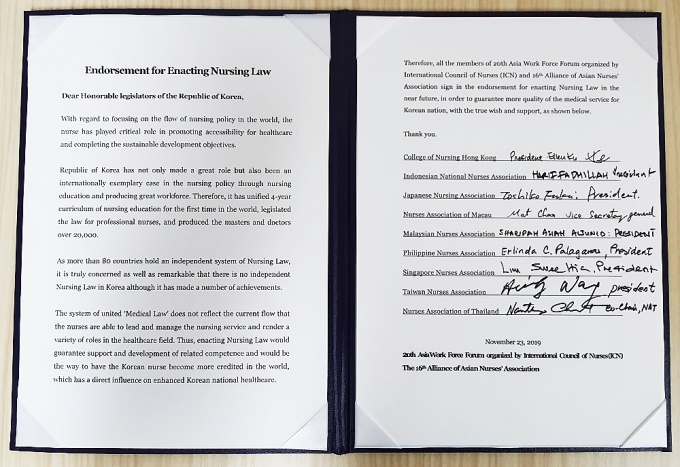 [µ¥Àϸ®¸Þµð ¹Ú¼ºÀº ±âÀÚ] ´ëÇѹα¹ °£È£¹ý Á¦Á¤À» À§ÇØ ¾Æ½Ã¾Æ °£È£»ç ´ëÇ¥µéÀÌ ÆÈÀ» °È¾ú´Ù.