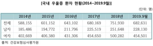 ´õ¿íÀÌ ¿ì¿ï·Á¶¿ïÁõ ȯÀÚ Áß 20´ëÀÇ ºñÁßÀÌ µÎµå·¯Á³´Ù. 20´ë ¿ì¿ïÁõ ȯÀÚ´Â 2014³â 4¸¸ 9975¸í¿¡¼ Áö³ÇØ 9¸¸ 8434¸íÀ¸·Î 97% ´Ã¾ú´Ù. °°Àº ±â°£ 10´ë ¿ì¿ïÁõ ȯÀÚµµ 2¸¸ 3885¸í¿¡¼ 4¸¸ 2535¸íÀ¸·Î 78% ³ô¾ÆÁ³´Ù.