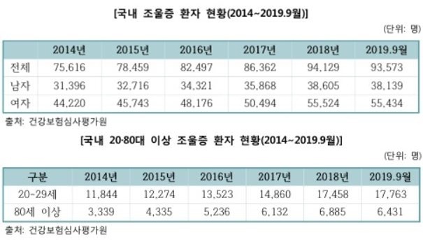 20´ë Á¶¿ïÁõ ȯÀÚ¼ö´Â 2014³â 1¸¸ 1844¸í¿¡¼ Áö³ÇØ 1¸¸ 17458¸í±îÁö ´Ã¾ú°í, ¿ÃÇØ¿¡´Â 1¸¸ 7763¸í¿¡ ´ÞÇß´Ù.