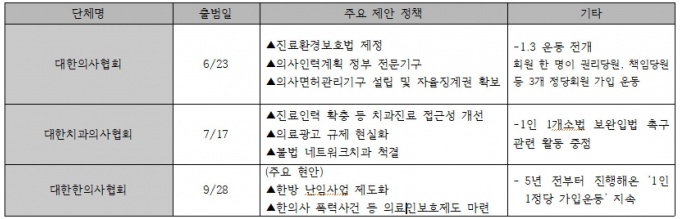 ¿ÃÇØ ÃÊ ÀÌÈÄ ¿¬´Þ¾Æ Ãâ¹üÇÑ ÀÇ·á´Üü »êÇÏ ÃѼ±±âȹ´Ü Áß¿¡¼ ù ¿òÁ÷ÀÓÀ» º¸ÀÎ °ÍÀº ´ëÇÑÀÇ»çÇùȸ(ÀÌÇÏ ÀÇÇù)´Ù. ÀÇÇù ÃѼ±±âȹ´ÜÀº Àü¶ó³²µµÀÇ»çȸ ÀÌÇʼö ȸÀåÀ» ´ÜÀåÀ¸·Î Áö³ 6¿ù 23ÀÏ °ø½Ä Ãâ¹üÇß´Ù.