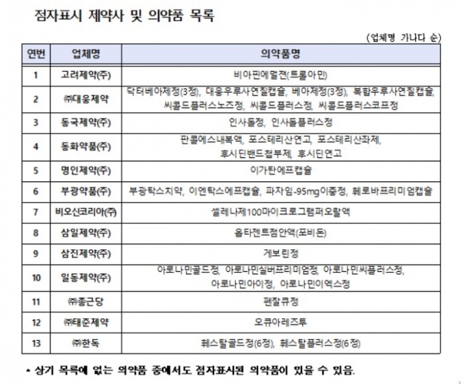 ÀϹÝÀǾàǰ »ý»ê½ÇÀû »óÀ§ 30°³ Á¦Ç°°ú ¼öÀÔ½ÇÀû »óÀ§ 20°³ Á¦Ç° ¹× ¾ÈÀü»óºñÀǾàǰ 13°³ Á¦Ç° Áß ±¸ÀÔ °¡´ÉÇÑ 58°³ Á¦Ç°ÀÇ Á¡ÀÚÇ¥½Ã ¿©ºÎ¸¦ Á¶»çÇÑ °á°ú, 16°³(27.6%) Á¦Ç°¿¡¸¸ Á¡ÀÚÇ¥½Ã°¡ ÀÖ¾ú´Ù.