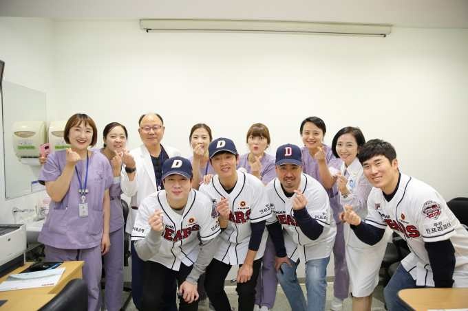À̳¯ º´¿ø¿¡´Â 2019³â ÅëÇÕ ¿ì½ÂÀÇ Äè°Å¸¦ ÀÌ·é µÎ»êº£¾î½º ÁÖÀü ¼±¼öÀÎ À¯Èñ°ü, ¹Ú°Ç¿ì, Çã°æ¹Î, Á¤¼öºó ¼±¼ö°¡ ȯÀÚ°æÇèÆò°¡ Àü±¹ 1À§ Á߾Ӵ뺴¿øÀ» ¹æ¹®ÇØ ¼Ò¾Æº´µ¿À» µ¹¸ç Åõº´ÁßÀÎ ÀÔ¿ø ȯ¾ÆµéÀÇ ÄèÀ¯¸¦ ±â¿øÇÏ¸ç ¼±¹°À» Àü´ÞÇß´Ù.