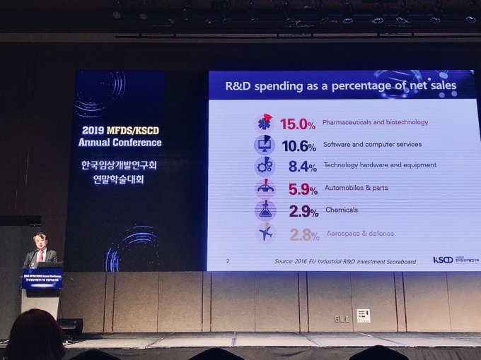 ¹æ¿µÁÖ ±³¼ö´Â "±Û·Î¹ú Á¦¾à¾÷°è R&D ºñÁßÀº ¸ÅÃâ¾×ÀÇ ÃÖ´ë 18%±îÁö Áõ°¡Çϰí ÀÖÁö¸¸, ¿¬°£ ¼ºÀå·üÀº 2017³â ¹Ù´ÚÀ» ÃÆ´Ù°¡ ÀÌÁ¦ 3%¿¡ Á¤Ã¼µÅ ÀÖ´Ù"¸ç "ƯÈ÷ Ç×¾Ï ºÐ¾ß´Â Ç¥ÀûÇ×¾ÏÁ¦¿¡ ÀÌ¾î ¸é¿ªÇ×¾ÏÁ¦°¡ µîÀåÇÏ¸é¼ ÀÓ»ó½ÃÇèÀÌ Æø¹ßÀûÀ¸·Î ´Ã¾î³ª°í ÀÖÁö¸¸ ¹®Á¦Á¡µµ ÀÖ´Ù"°í ÁöÀûÇß´Ù.