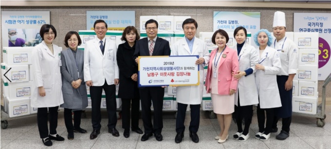 [µ¥Àϸ®¸Þµð ÀÓ¼ö¹Î ±âÀÚ] °¡Ãµ´ë ±æº´¿ø(º´¿øÀå ±è¾ç¿ì) Áö¿ª»çȸ»ó»ýºÀ»ç´ÜÀº 11ÀÏ ÀÎõ ³²µ¿±¸¿¡ ÀÌ¿ô»ç¶û ±èÀå±èÄ¡ 120»óÀÚ(ÃÑ 1200kg)¸¦ Àü´ÞÇß´Ù.