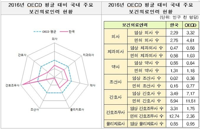 2016³â ÀÓ»ó ÀÇ»ç¿Í ÀÓ»ó °£È£»ç ¼ö´Â °¢°¢ Àα¸ 1000¸í´ç 2.3¸í, 3.5¸íÀ¸·Î OECD Æò±Õ 3.3¸í, 7.2¸íº¸´Ù Å©°Ô ³·¾Ò´Ù.