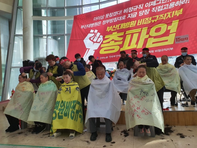 [µ¥Àϸ®¸Þµð ¹Ú¹Î½Ä ±âÀÚ] ºñÁ¤±ÔÁ÷ ³ëµ¿ÀÚµéÀÇ Á¤±ÔÁ÷ ÀüȯÀ» µÑ·¯½Î°í ³ë»ç°£ ´ëÄ¡°¡ À̾îÁö°í ÀÖ´Â °¡¿îµ¥ 24ÀÏ ºÎ»ê´ëº´¿ø ºñÁ¤±ÔÁ÷ ³ëµ¿ÀÚµéÀÌ Á÷Á¢°í¿ëÀ» ÁÖÀåÇÏ¸ç »è¹ß°ú ¹«±âÇÑ ´Ü½Ä³ó¼º¿¡ µ¹ÀÔÇß´Ù.