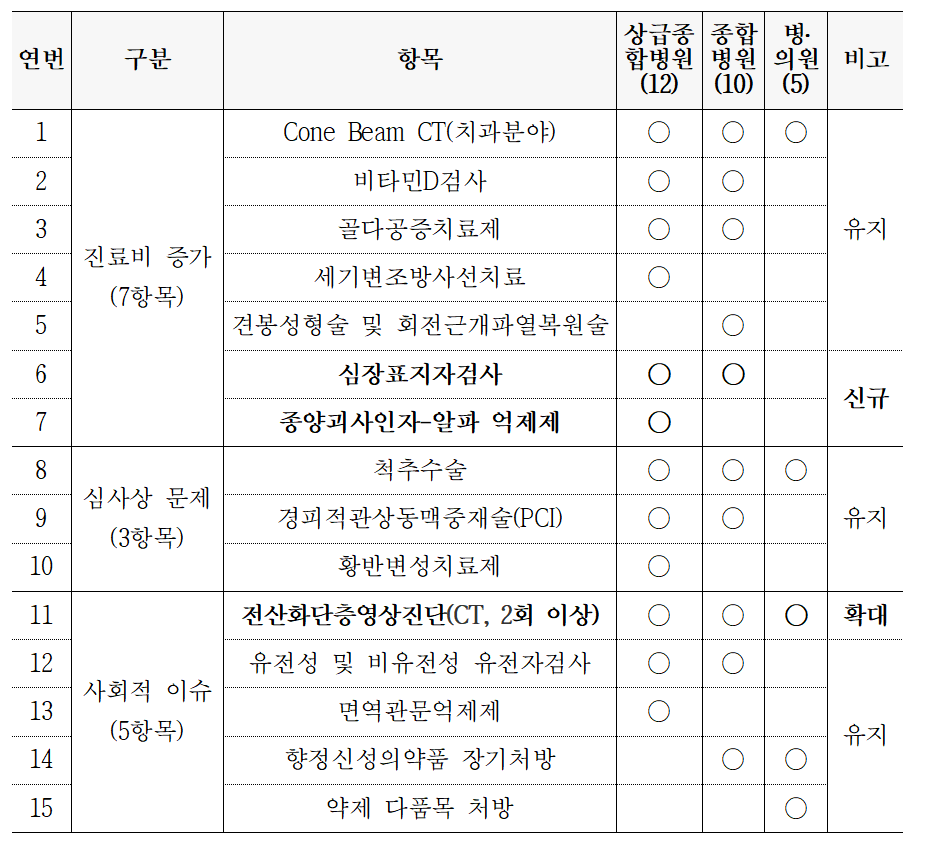 »ó±ÞÁ¾ÇÕº´¿ø, Á¾ÇÕº´¿ø, º´․ÀÇ¿ø Àü Á¾º° °øÅëÀ¸·Î Àû¿ëÇÏ´Â Ç׸ñÀº ¡ãôÃß¼ö¼ú ¡ãCone Beam CT(Ä¡°úºÐ¾ß) ¡ãÀü»êÈ´ÜÃþ¿µ»óÁø´Ü(CT, 2ȸ ÀÌ»ó)ÀÌ´Ù.