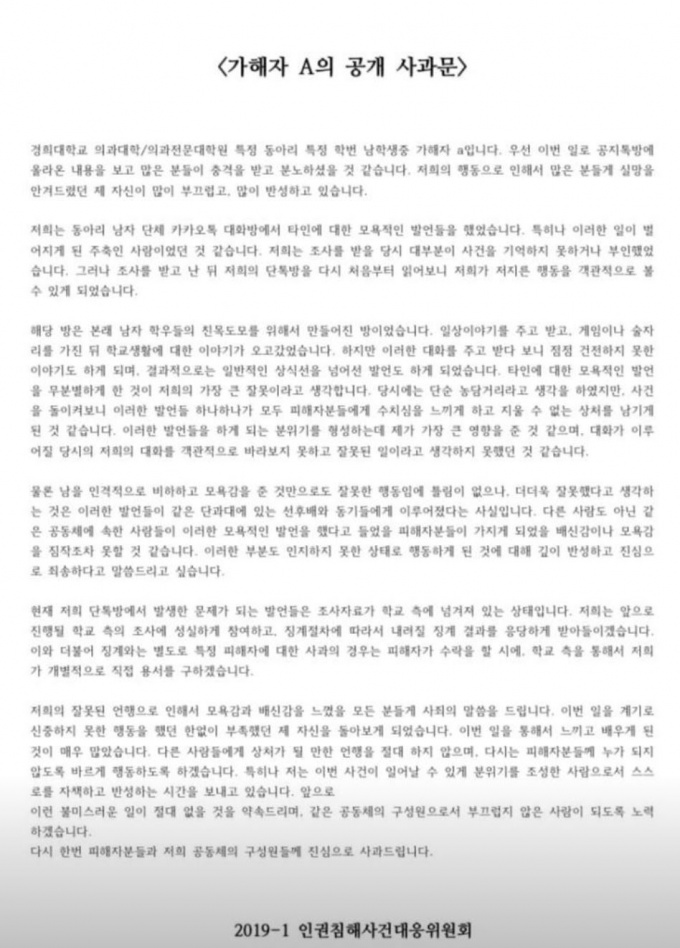 [µ¥Àϸ®¸Þµð ¹ÚÁ¤¿¬ ±âÀÚ] SNS ´ëȹ濡¼ ¼ºÈñ·Õ ¹ß¾ðÀ» ÇÑ °æÈñÀÇ´ë ³²Çлýµé¿¡ ´ëÇÑ Çб³ Â÷¿øÀÇ Á¶»ç°¡ ½ÃÀ۵ƴÙ.