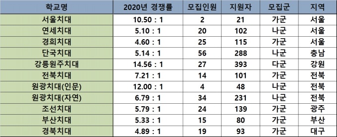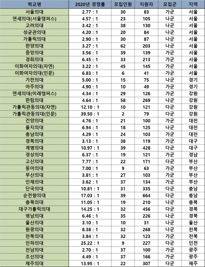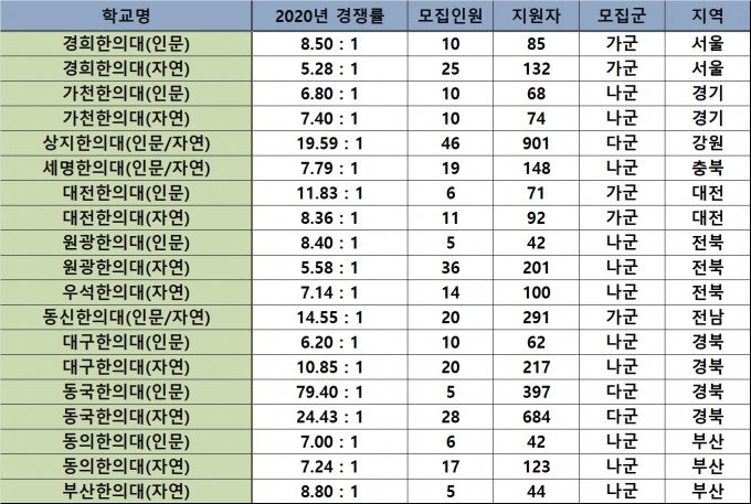 µ¥Àϸ®¸Þµð°¡ Àü±¹ ÀÇ´ë·Ä¡´ë·ÇÑÀÇ´ëÀÇ 2020³â Á¤½Ã¸ðÁý ÀϹÝÀüÇü °æÀï·üÀ» Á¶»çÇÑ °á°ú, Àüü ÇÑÀÇ´ë Æò±Õ °æÀï·üÀÌ 12.46:1·Î °¡Àå ³ô¾Ò´Ù.