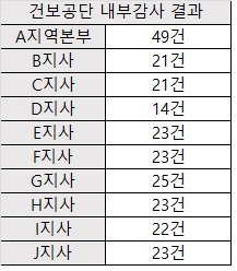°Çº¸°ø´ÜÀÌ 6ÀÏ °ø°³ÇÑ 2019³â 10¿ù ÅëÇÕ Á¾ÇÕ°¨»ç°á°ú¸¦ º¸¸é, AÁö¿ªº»ºÎ´Â 49°Ç, ³ª¸ÓÁö 9°³ Áö»ç´Â Æò±Õ ¾à 20¿© °ÇÀÇ ÁöÀû »çÇ×ÀÌ Á¦±âµÆ´Ù.