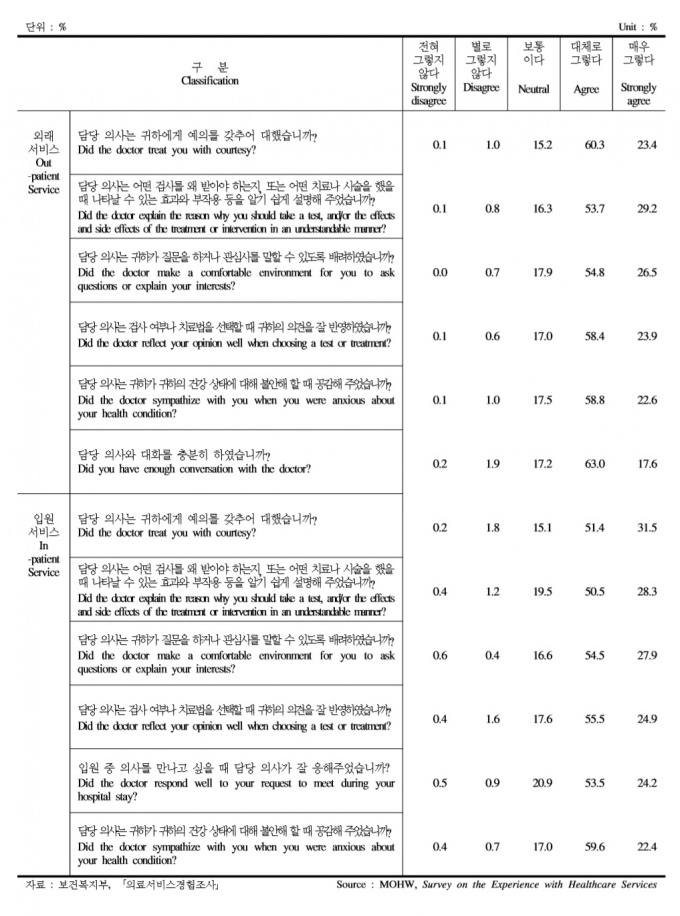 Àǻ簡 Á¦°øÇÏ´Â ÀǷἺñ½º¿¡ ´ëÇÑ Á¶»ç¿¡¼´Â 81.4%, °£È£»ç ¼ºñ½ºÀÇ °æ¿ì 80.6%°¡ ¸¸Á·À» Ç¥Çß´Ù.