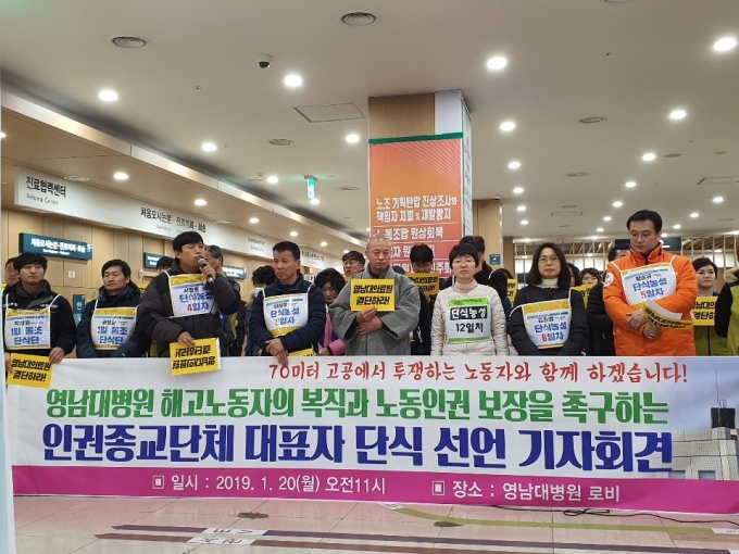 À̵é Á¾±³´Üü´Â “»ç¶÷À» »ì¸®´Â º´¿ø¿¡¼ ³ëµ¿ÀαÇÀ» À¯¸°ÇÏ´Â »óȲÀ» ´õ ÀÌ»ó µÎ°í º¼ ¼ö ¾ø´Ù”¸ç “ÀαÇÁ¾±³ÀεéÀº Àý¹ÚÇÑ ¸¶À½À» °®°í ¿µ³²´ëº´¿ø°ú »çȸ¿¡ È£¼ÒÇϱâ À§ÇØ ¹«±âÇÑ ´Ü½Ä °á½ÉÀ» ¹àÈ÷°íÀÚ ÇÑ´Ù”°í ¸»Çß´Ù.