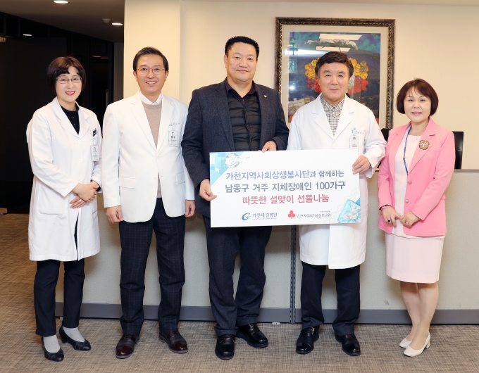 °¡ÃµÁö¿ª»çȸ»ó»ýºÀ»ç´Ü°ú ±è¾ç¿ì º´¿øÀåÀº À̳¯ º´¿øÀå½Ç¿¡¼ ³²µ¿±¸ äÀÇ¿õ »çȸº¹Áö°úÀå, ¼º¿Á±â ³²µ¿±¸ÁöüÀå¾ÖÀÎÇùȸ ÁöȸÀå µîÀÌ Âü¼®ÇÑ °¡¿îµ¥ ¼±¹°¿ë ±è 100¼¼Æ®¸¦ Àü´ÞÇß´Ù.
