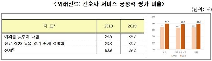 °£È£»çÀÇ Åµµ ¹× ¼ºñ½º¿¡ ´ëÇØ ±àÁ¤ÀûÀ¸·Î Æò°¡ÇÑ ÀÀ´äÀÚ ºñÀ²Àº 89.2%·Î 2018³â(83.9%)º¸´Ù ³ô¾ÆÁ³´Ù.