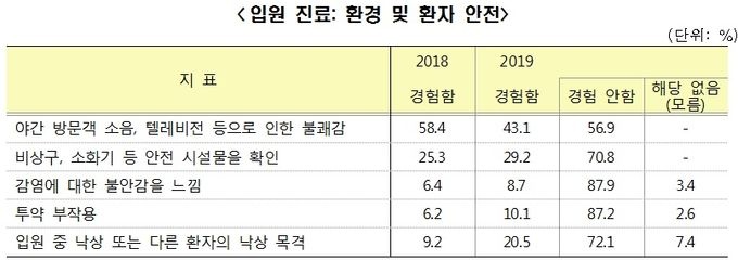 ¶ÇÇÑ ÀÔ¿øÈ¯ÀÚÀÇ 4.1%´Â ¹ã¿¡ ¹æ¹®°´ ¼ÒÀ½ , ÅÚ·¹ºñÀü µîÀ¸·Î ºÒÄè°¨À» ´À³¤ ÀûÀÌ ÀÖ´Ù°í ´äÇß°í , º´¿ø ³» ¾ÈÀü½Ã¼³À» È®ÀÎÇÑ »ç¶÷Àº 29.2%·Î ³·¾Ò´Ù .