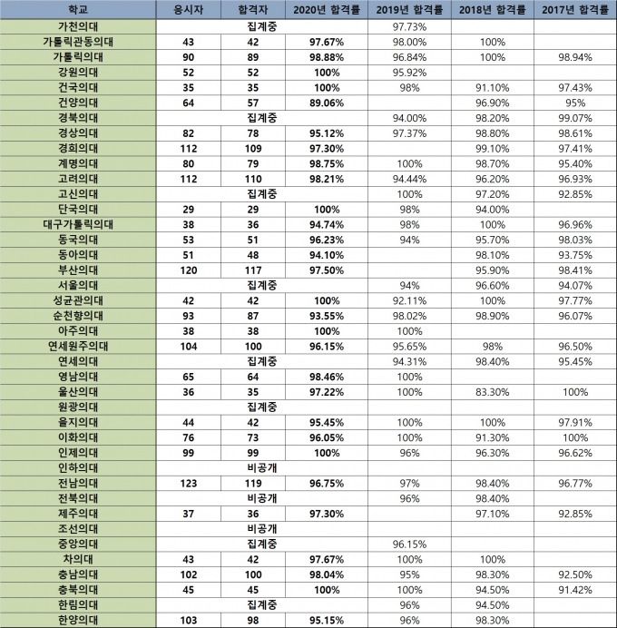 [µ¥Àϸ®¸Þµð ¹Ú¼ºÀº ±âÀÚ] 2020³âµµ ÀÇ»ç ±¹°¡½ÃÇè °á°ú°¡ 20ÀÏ ¹ßÇ¥µÇ¸é¼ Àü±¹ Àǰú´ëÇзÀÇÇÐÀü¹®´ëÇпøÀÇ Èñºñ°¡ ¾ù°¥¸®´Â ¸ð¾ç»õ´Ù.