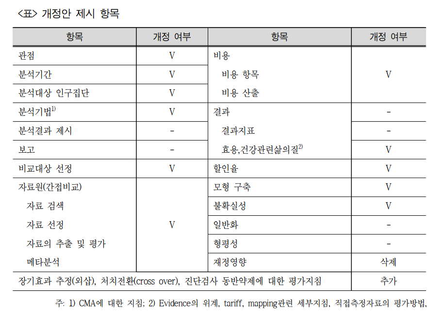°³Á¤ÀÌ ¿ä±¸µÇ´Â Ç׸ñÀº ÀÚ·á¿øÀ» ºñ·ÔÇØ ºÐ¼®±â°£·´ë»ó·±â¹ý·ÇÒÀÎÀ² µîÀ̸ç ÀçÁ¤¿µÇâ Ç׸ñÀº »èÁ¦, ±×¿Ü Àå±âÈ¿°ú ÃßÁ¤·Ã³Ä¡Àüȯ·Áø´Ü°Ë»ç µ¿¹Ý¾àÁ¦¿¡ ´ëÇÑ Æò°¡Áöħ µîÀÌ Ãß°¡µÆ´Ù.