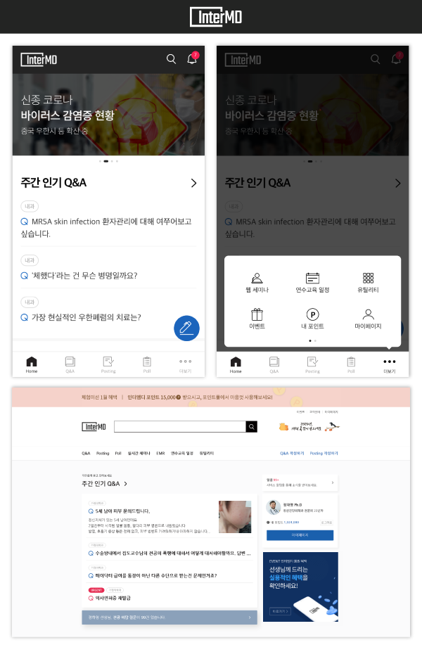 ¢ßÀÎÅÍ¿¥µðÄÄÆÛ´ÏÀÇ ÀÌ¿µµµ ´ëÇ¥´Â “ȸ¿øµéÀÇ ¸ñ¼Ò¸®¸¦ ¹Ý¿µÇØ Á÷°üÀûÀÌ°í ±ò²ûÇÑ µðÀÚÀÎÀ» ÅëÇØ Ȱ¿ë¼ºÀ» ³ôÀÌ´Â µ¥ ÁßÁ¡À» µÐ °³Æí”À̶ó¸ç “±×µ¿¾È ȯÀÚÀÇ Áúȯ¿¡ ´ëÇØ ´Ù¸¥ Àü¹®ÀÇ¿Í ÇÔ²² ÀǰßÀ» ³ª´©°í ÀÇ»çµé »çÀÌ À¯¿ëÇÑ Á¤º¸³ª Æ®·»µå¸¦ °øÀ¯ÇÏ´Â °ø°£¿¡ ±×ÃÆ´Ù¸é, ¾ÕÀ¸·Î Æø³ÐÀº ÀÇ·á Á¤º¸¿Í ±³À° ÄÜÅÙÃ÷, Ä¿¸®¾î Á¤º¸ µî º¸´Ù Àü¹®ÈµÈ ÄÜÅÙÃ÷¸¦ ¸¶·ÃÇØ ÀÇ»çµé¿¡°Ô ²À ÇÊ¿äÇÑ Ç÷§ÆûÀ¸·Î ¹ßµ¸¿òÇϰíÀÚ ÇÑ´Ù”°í Æ÷ºÎ¸¦ ¹àÇû´Ù.