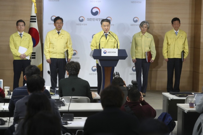 Á¤ºÎ´Â 30ÀÏ ¿ÀÀü ¹®ÀçÀÎ ´ëÅë·É ÁÖÀç·Î Á¤ºÎ¼¿ïû»ç¿¡¼ ÃѸ®, °æÁ¦·»çȸºÎÃѸ®, °ü°èºÎó Àå°ü, 17°³ ½Ã·µµÁö»ç°¡ Âü¼®ÇÏ´Â ‘½ÅÁ¾ Äڷγª¹ÙÀÌ·¯½º °¨¿°Áõ ´ëÃ¥ Á¾ÇÕÁ¡°ËȸÀÇ’¸¦ °³ÃÖÇß´Ù.