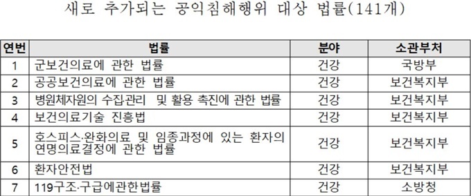 ¿©±â¿¡´Â ÀÇ·á°è °ü·Ã ¹ý¾È ȯÀÚ¾ÈÀü¹ý µîÀ» ºñ·ÔÇØ ÃÑ 7°Ç °¡·® Æ÷ÇԵƴµ¥, À̸¦ ÅëÇØ °øÀͽŰíÀÚ º¸È£ °È µî¿¡ ±àÁ¤ÀûÀÎ ¿µÇâÀ» ³¢Ä¥ °ÍÀ̶õ ºÐ¼®ÀÌ´Ù.