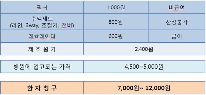 ÀÌ ¼ö¾×¼¼Æ®´Â º´¿ø¿¡ 4500~5000¿ø¿¡ ÀÔ°íµÇ°í, ȯÀÚ¿¡°Ô´Â 7000~1¸¸2000¿øÀÌ Ã»±¸µÇ´Â ½ÇÁ¤ÀÌ´Ù.