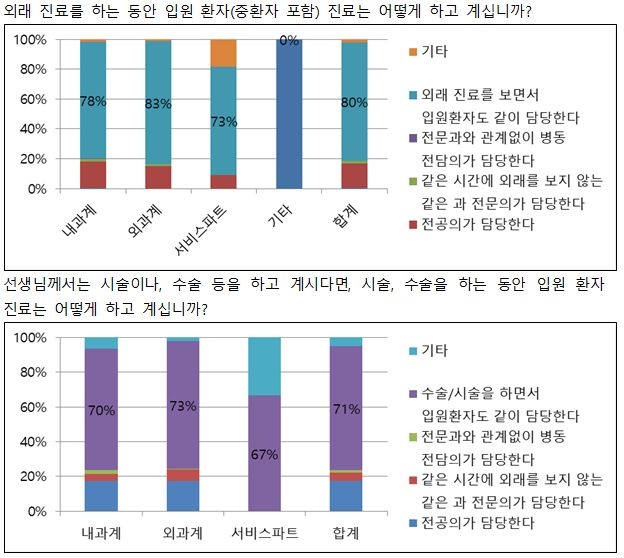 ¼³¹®Á¶»ç °á°ú¿¡ µû¸£¸é ºÀÁ÷ÀÇ Áß ÀÔ¿øÈ¯ÀÚ Áø·á¸¦ ÇÏ´Â ºñÀ²Àº 60%¿´´Ù. ÀÔ¿øÈ¯ÀÚ Áø·á¸¦ ÇÏ´Â ºÀÁ÷ÀÇ Áß 80%´Â ¿Ü·¡Áø·á¸¦ º¸¸é¼ µ¿½Ã¿¡ ÀÔ¿øÈ¯ÀÚµµ ÇÔ²² ´ã´çÇϰí ÀÖ´Â °ÍÀ¸·Î ³ªÅ¸³µ´Ù.