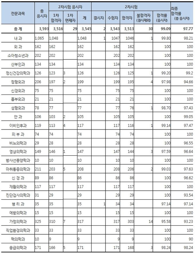 [µ¥Àϸ®¸Þµð ¹Ú´ëÁø ±âÀÚ] 2020³âµµ Àü¹®ÀÇ ÀڰݽÃÇè ÃÖÁ¾ ÇÕ°Ý·üÀÌ 97.77%¸¦ ±â·ÏÇß´Ù. ÀÌ´Â Áö³ 1Â÷ ÇÕ°Ý·ü 98.65%º¸´Ù ¼ÒÆø Ç϶ôÇÑ ¼öÄ¡´Ù.