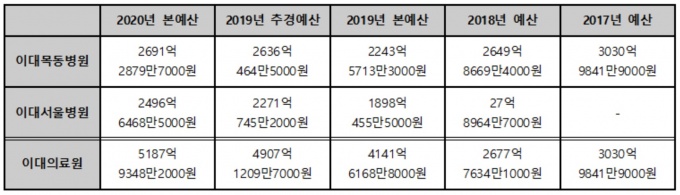 ÀÌÈÄ À̴뼿ﺴ¿øÀÌ Á¤½Ä °³¿øÇÑ 2019³â¿¡µµ º»¿¹»êÀ¸·Î Àü³âº¸´Ù 400¾ï¿ø Á¤µµ ³·°Ô ¹Þ¾ÒÀ¸³ª Ã߰濹»êÀ¸·Î ¾à 400¾ï¿øÀ» ´Ù½Ã Æí¼º¹Þ¾Ò´Ù. ÀÌÈÄ ÀÌ´ë¸ñµ¿º´¿ø 2020³â º»¿¹»êÀº 2019³â Ã߰濹»ê¿¡ ºñÇØ 50¾ï¿ø Á¤µµ ´Ã¾ú´Ù.