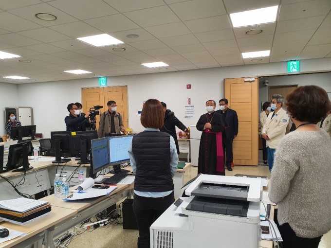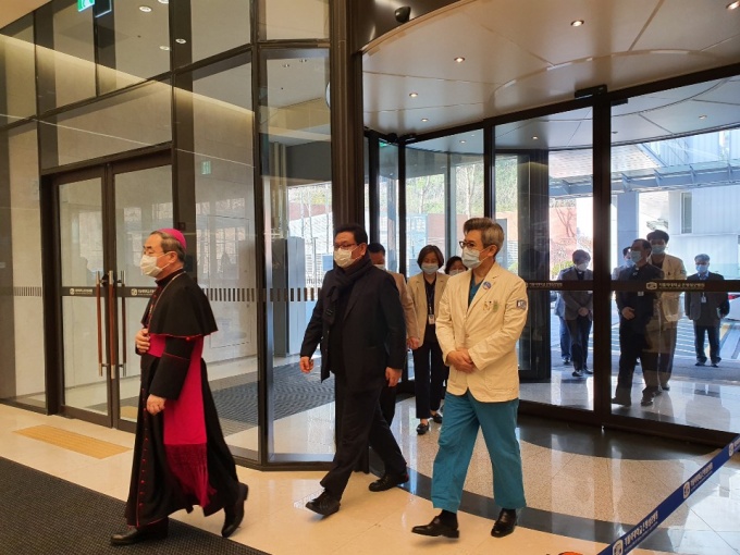 À̳¯ ¼Õ ÁÖ±³´Â º´¿ø ³» ¸¶·ÃµÈ ¼º´çÀ» ¹æ¹®ÇØ ±âµµ ÈÄ ÃÖ±Ù Çѱ¹ õÁÖ±³¿¡¼ ¹ßÇ¥ÇÑ 'Äڷγª19 ±Øº¹À» ûÇÏ´Â ±âµµ'¹®À» Àаí ÁöÇÏ 2Ãþ »óȲ½Ç ¹× 16Ãþ º´»ó ÀϺθ¦ ¹æ¹®Çؼ Àü¹ÝÀûÀÎ ¹æ¿ª »óȲÀ» È®ÀÎÇß´Ù.
