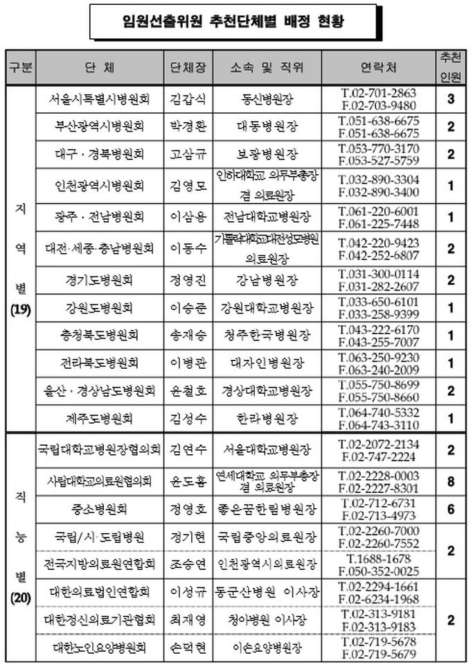 Á÷´Éº° ´Üü¿¡´Â 20¸íÀÌ ÅõÇ¥¿¡ Âü¿©ÇÒ ¼ö ÀÖ´Ù. »ç¸³´ëÇб³ÀÇ·á¿øÇùÀÇȸ°¡ 8¸íÀ¸·Î °¡Àå ¸¹°í, Áß¼Òº´¿øÈ¸°¡ 6¸íÀ¸·Î µÚ¸¦ À̾ú´Ù.