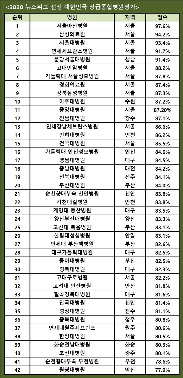 [µ¥Àϸ®¸Þµð ÀÓ¼ö¹Î ±âÀÚ] ÇØ¿Ü¿¡¼ ±¹³» »ó±ÞÁ¾ÇÕº´¿ø 42°³ ¼øÀ§¸¦ Æò°¡ÇÑ °á°ú ¼¿ï¾Æ»êº´¿ø°ú »ï¼ºÀÇ·á¿øÀÌ ³ª¶õÈ÷ 1, 2À§¸¦ Â÷ÁöÇß´Ù.