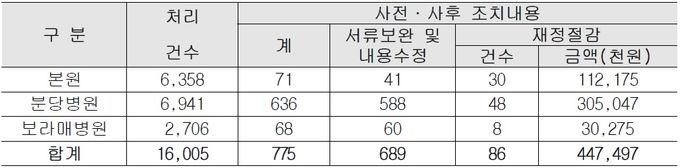 ºÐ´ç¼¿ï´ëº´¿øÀÇ °æ¿ì ¿µ»óÀÇÇаú ÀÇ·á±â±â À¯Áöº¸¼ö ºñ¿ëÀÌ ´Ù¸¥ º´¿øº¸´Ù ºñ½Î°Ô Ã¥Á¤µÅ ÀÖÀ½À» È®ÀÎÇÏ°í ¼ö¼ö·á ÀÎÇÏ ¹× À¯Áöº¸¼ö ±â°£ Ãà¼Ò¸¦ ÅëÇØ 5200¸¸¿øÀ» Àý°¨Çß´Ù.