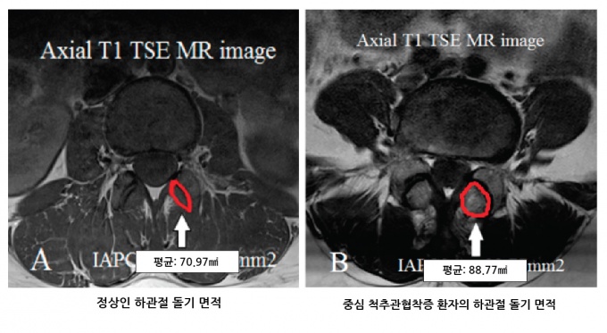 À̹ø ¿¬±¸¿¡¼ ±è ±³¼ö´Â Áß½É Ã´Ãß°üÇùÂøÁõ ȯÀÚ 116¸í°ú Á¤»óÀÎ 102¸íÀÇ ¿äÃß ÀÚ±â°ø¸í¿µ»ó(MRI)À» ÅëÇØ ÇϰüÀý µ¹±âÀÇ ¸éÀûÀ» ºñ±³Çß´Ù. ¿¬±¸ °á°ú, Áß½É Ã´Ãß°üÇùÂøÁõ ȯÀÚ ÇϰüÀý µ¹±â ¸éÀûÀÇ Æò±ÕÀº 88.77§±·Î Á¤»óÀÎ(70.97§±)º¸´Ù Æò±Õ 17.8§± ³Ð¾ú´Ù.