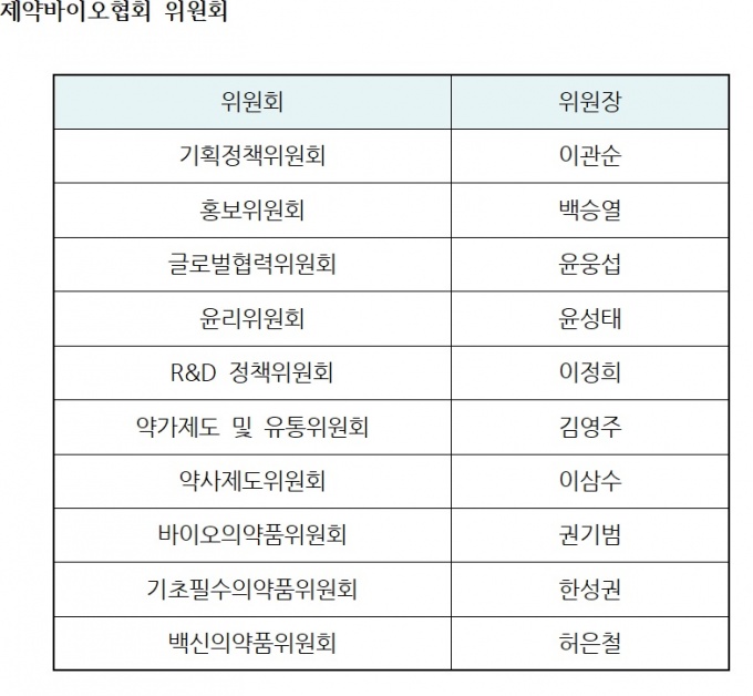 ±Ç±â¹ü µ¿±¹Á¦¾à ºÎȸÀåÀº ¹ÙÀÌ¿ÀÀǾàǰÀ§¿øÀå, ¹é½Â¿ ´ë¿øÁ¦¾à ºÎȸÀåÀº È«º¸À§¿øÀå, ÀÌÁ¤Èñ À¯ÇѾçÇà ´ëÇ¥´Â R&DÁ¤Ã¥À§¿øÀå¿¡ ÀÓ¸íµÆ´Ù.