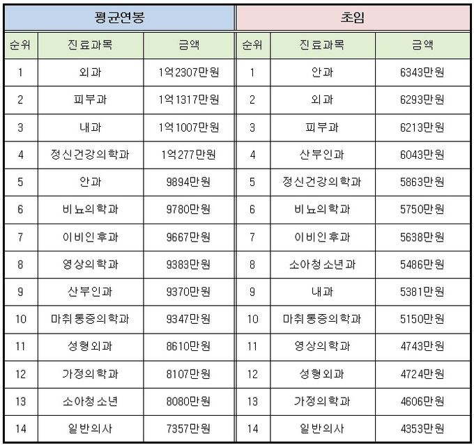 ÀÇ»ç Áß¿¡´Â ¿Ü°úÀǻ簡 6292¸¸¿øÀ¸·Î, ¾È°úÀǻ翡 ÀÌ¾î µÎ ¹øÂ°·Î ÃÊÀÓÀÌ ³ô¾Ò´Ù.