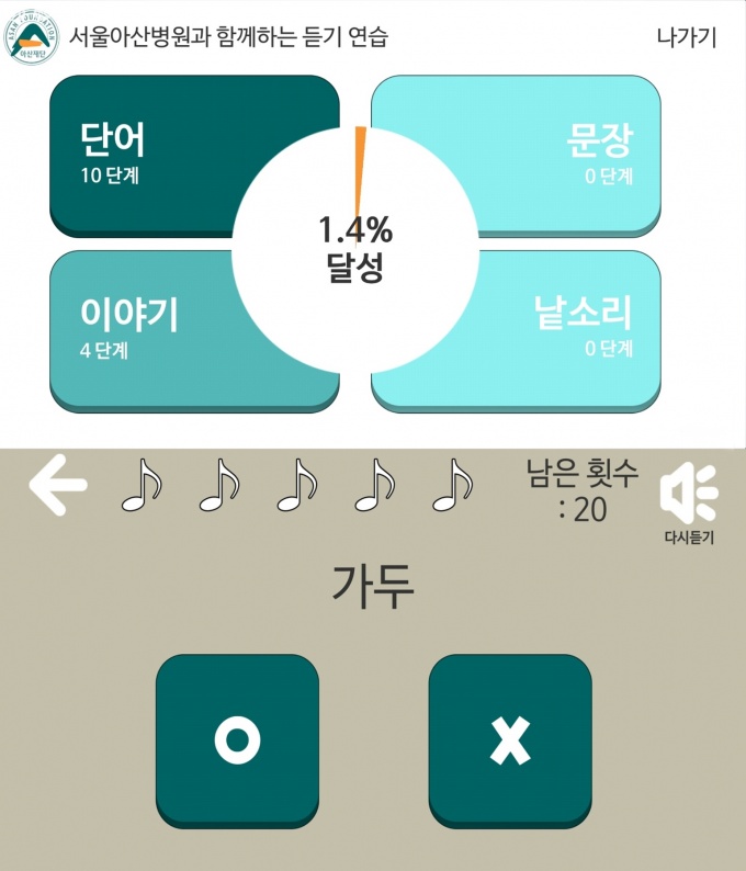 ¶ÇÇÑ °¢ ¸Þ´ºº°·Î 10´Ü°èÀÇ ³À̵µ·Î ±¸¼ºµÅ ÀÖ¾î ȯÀÚ Ã»·Â¿¡ µû¶ó Á÷Á¢ ´Ü°è¸¦ ¼³Á¤ÇÒ ¼ö ÀÖ°í, ¾î´À Á¤µµ ¼Ò¸®¸¦ µè´Â °ÍÀÌ Àͼ÷ÇØÁö¸é ‘¹®Àå’°ú ‘À̾߱⒠¸Þ´º¿¡¼ ÀÏ»ó»ýȰ°ú ºñ½ÁÇÑ ¼ÒÀ½ ȯ°æÀ» ¼³Á¤ÇØ µè±â ¿¬½ÀÀ» ÇÒ ¼öµµ ÀÖ´Ù.