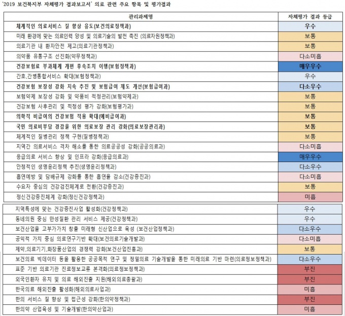 24ÀÏ º¸°Çº¹ÁöºÎ°¡ ÃÖ±Ù ¹ß°£ÇÑ '2019³â ÀÚüÆò°¡ °á°úº¸°í¼'¿¡¼ º¹ÁöºÎ´Â ÀÌó·³ ¸»Çß´Ù. º¸°í¼´Â Áö³ÇØ 62°³ °ú°¡ ¼öÇàÇÑ 72°³ °ü¸®°úÁ¦¿¡ ´ëÇÑ ÀÚüÆò°¡ °á°ú¸¦ ´ã¾Ò´Ù.